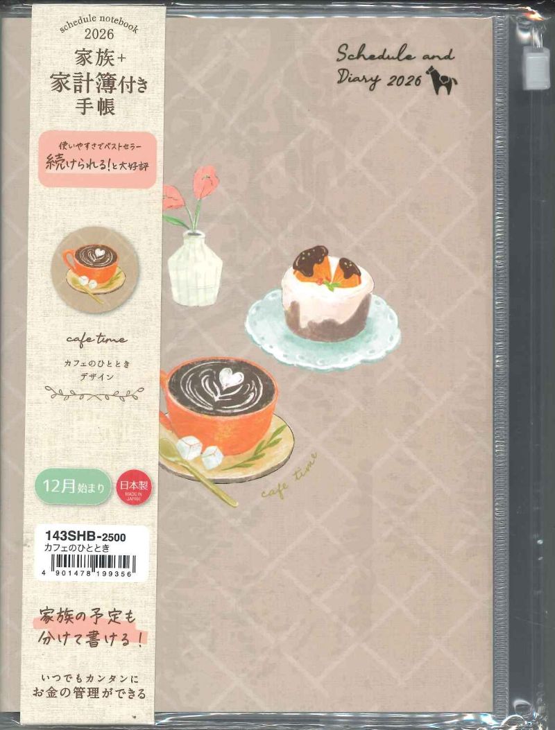 【メール便OK】クツワ 2026手帳 家族+家計簿 付き 手帳 B6 カフェのひととき 143SHB