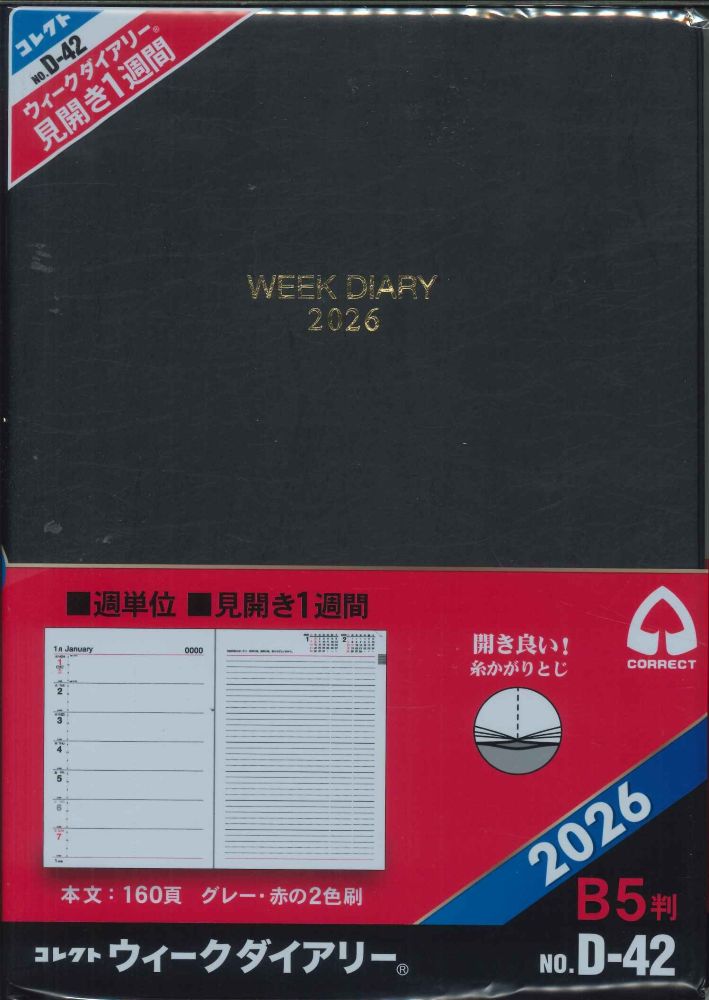 【メール便OK】コレクト 2026年 ウィークダイアリー B5判 D-42