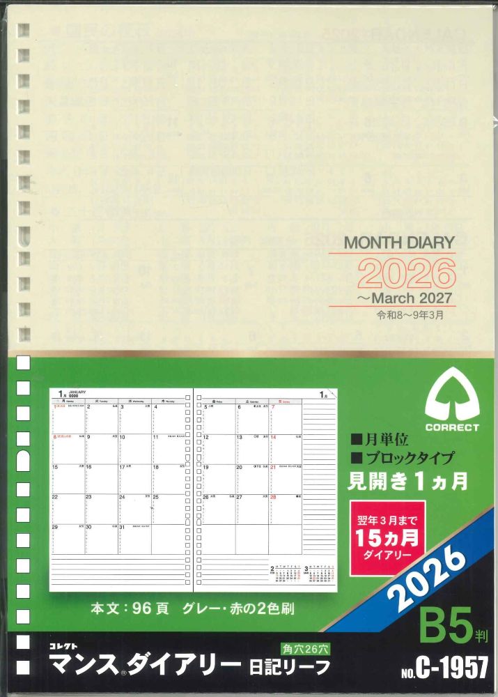 【メール便OK】コレクト 2026年 マンスダイアリー日記リーフ B5 C-1957