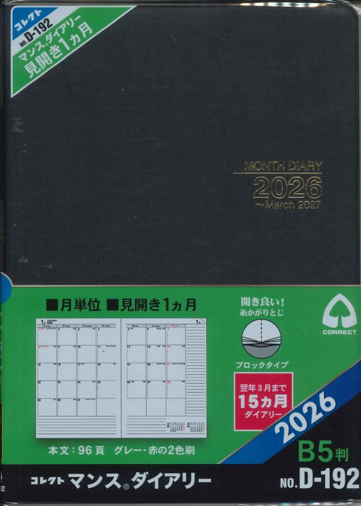 【メール便OK】コレクト 2026年 マンスダイアリー日記リーフ B5 D-192