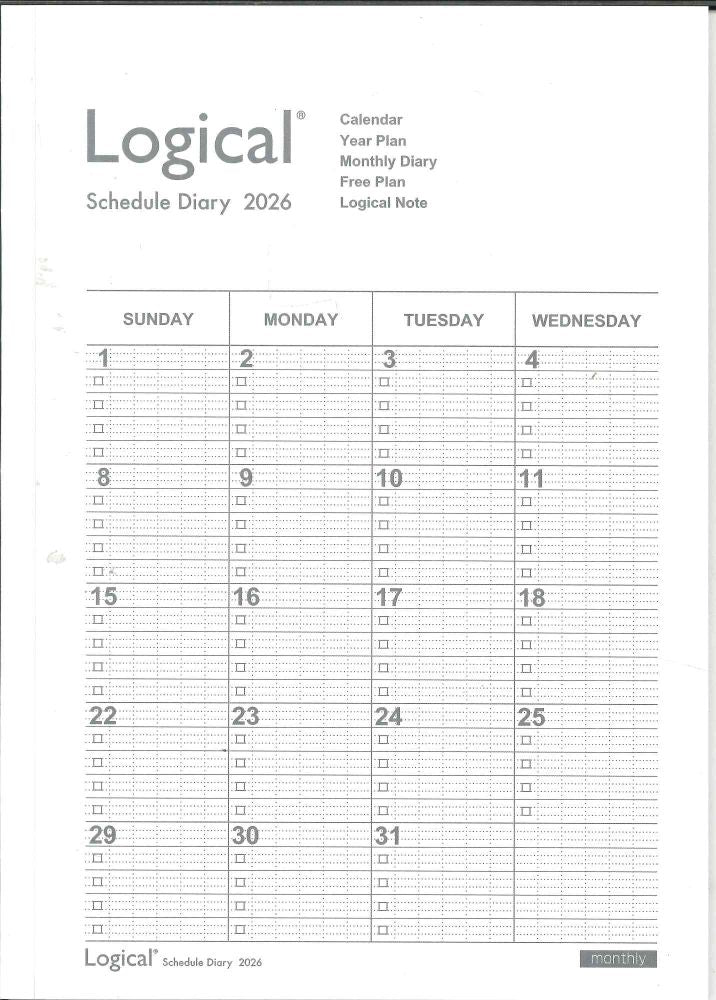【メール便OK】ナカバヤシ 2026 ロジカルダイアリー 月間ノートタイプ B5 NS-B502-26AW ホワイト