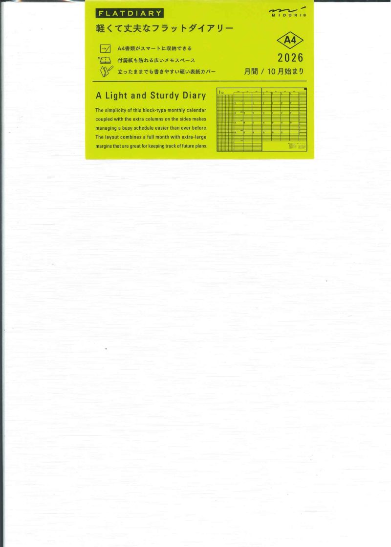 【メール便OK】ミドリ手帳 2026 フラットダイアリーA4 22392-006 白