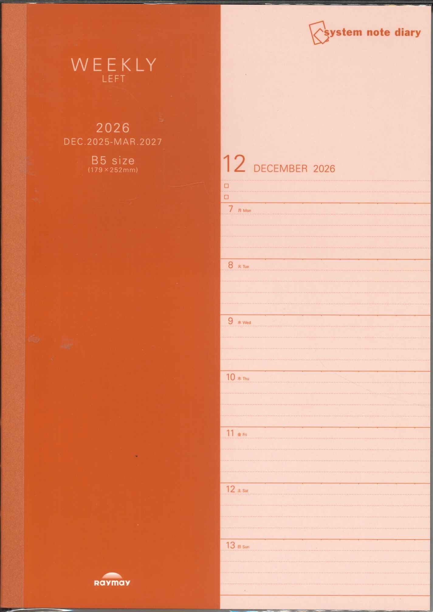 【メール便OK】レイメイ 2026 ノートダイアリー ウィークリー・レフト B5 RFDR2678