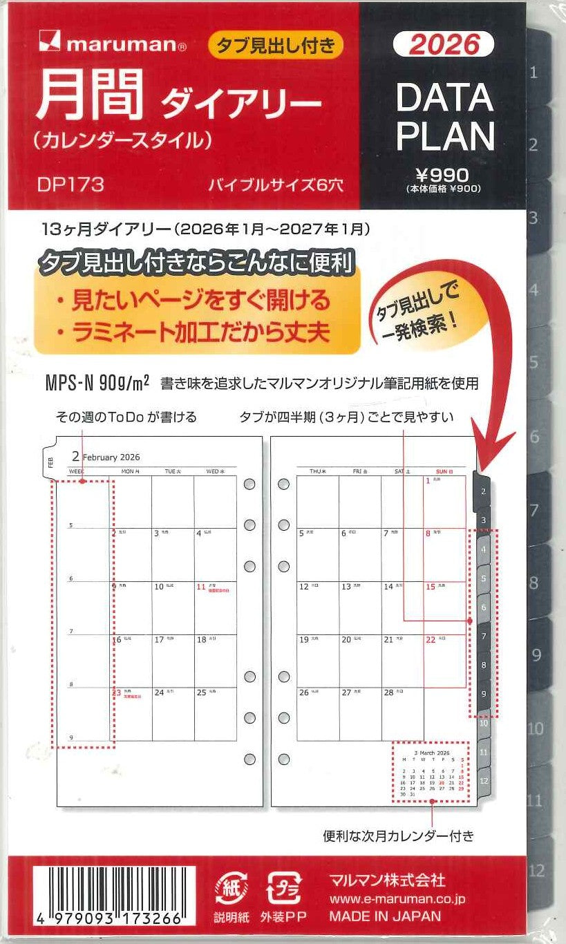 【メール便OK】マルマン 2026 月間ダイアリー バイブルサイズリフィル6穴 DP173 [10015996]