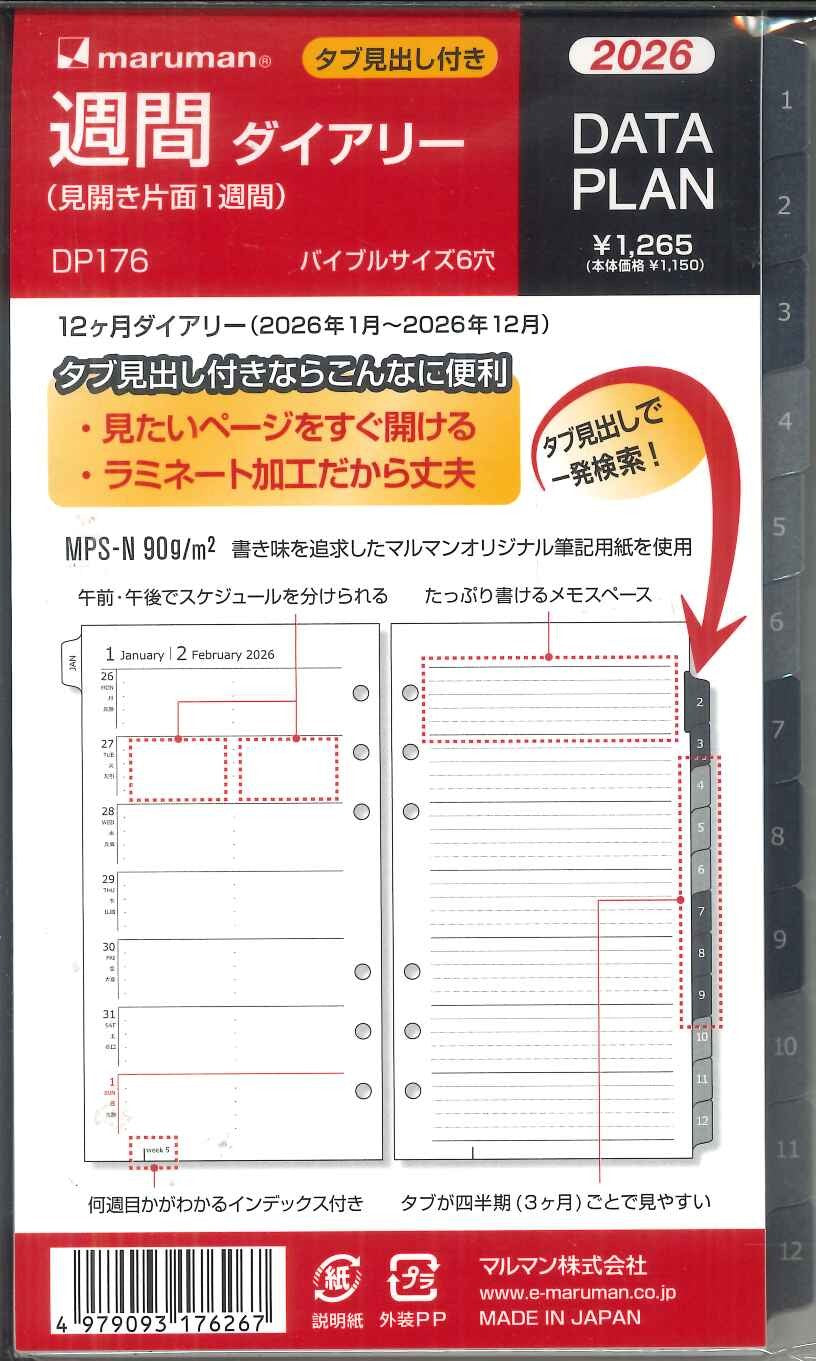 【メール便OK】マルマン 2026 週間ダイアリー バイブルサイズリフィル6穴 DP176 [10016000]