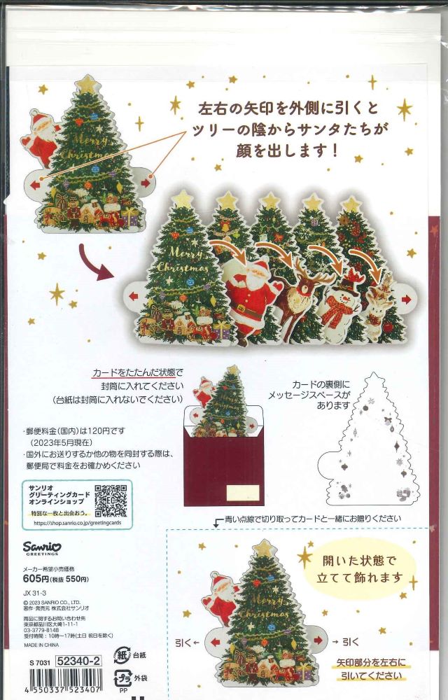 【メール便OK】サンリオ クリスマスーカード(開いた状態で立てて飾れます) S7031 [10016485]